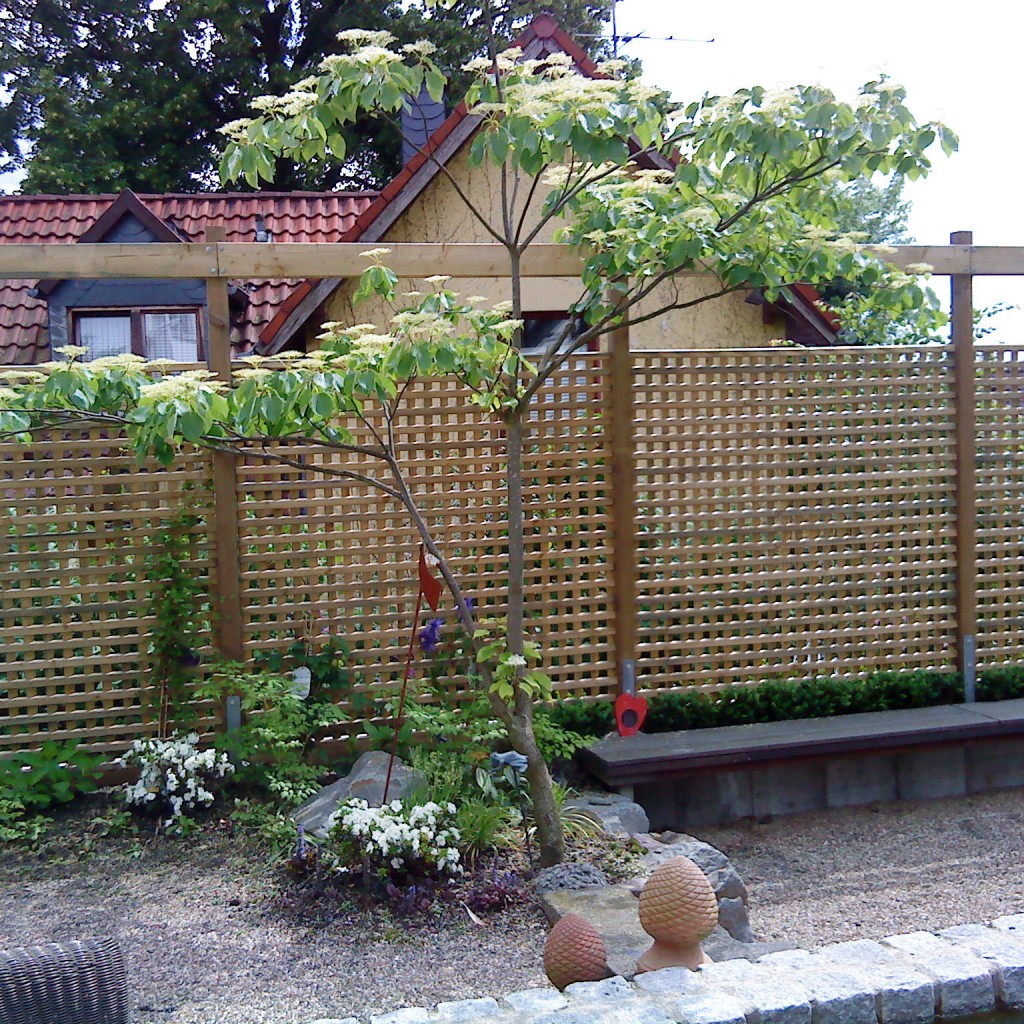 Ob Holzdecks, Sitzbänke, Pergolen, Zäune, Sichtschutzelemente, solitäre Elemente oder Palisaden – Holz ist ein dankbares und gut zu bearbeitendes Material. Es ist mit allen anderen Materialien kombinierbar, ohne dem anderen verbauten Material die Geltung zu nehmen. Ganz im Gegenteil, es steht eher in Symbiose zu ihnen.